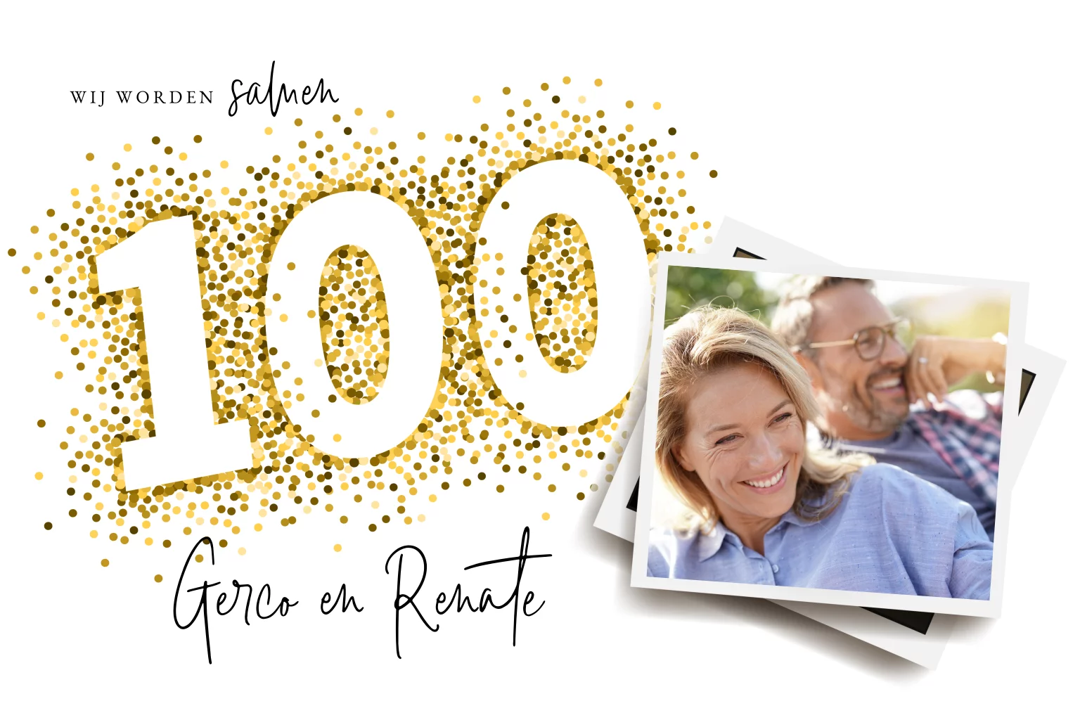 Samen 100 jaar uitnodiging met foto en gouden confetti
