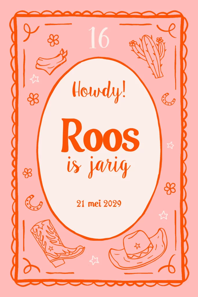 Uitnodiging cowboy thema verjaardag 16 jaar