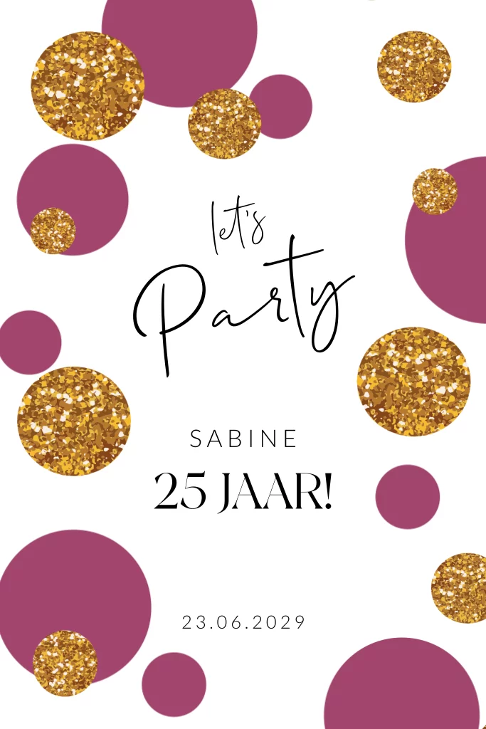 Vrolijke verjaardagskaart met stippen voor een 25 jarige. De stippen zijn zowel in mintkleur als in goudkleur.