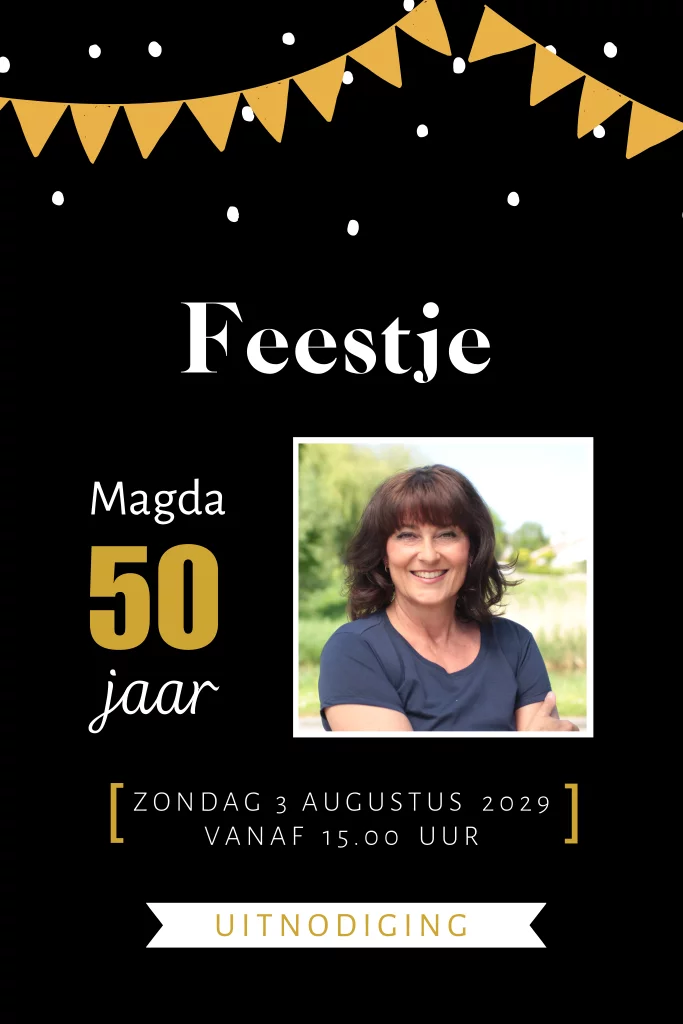 50 jaar uitnodiging met foto en slingers