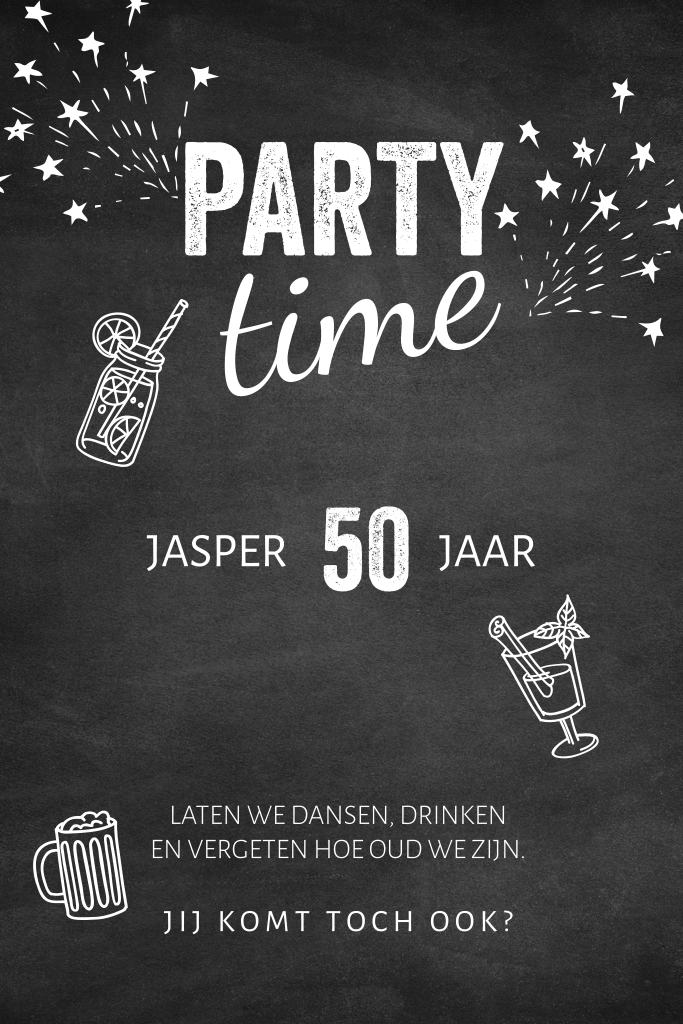 50 jaar uitnodiging krijtbod met een biertje en cocktail