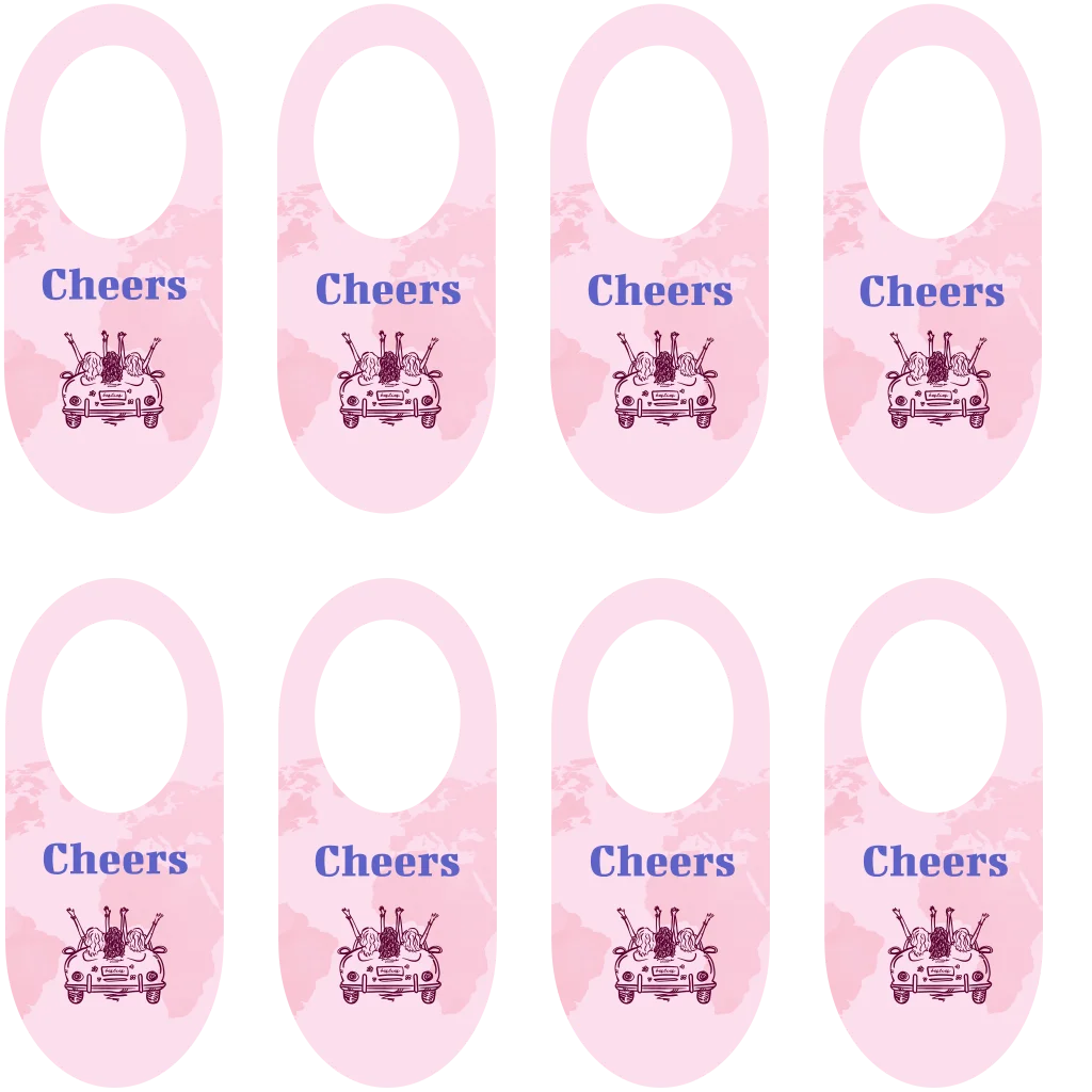 Hippe flessen labels met als thema reizen. Op deze flessenlabels zie je de wereld, en een auto met daarin je vriendinnen. De achtergrond is roze en de letters paars.| Totaalprijs: 0 |