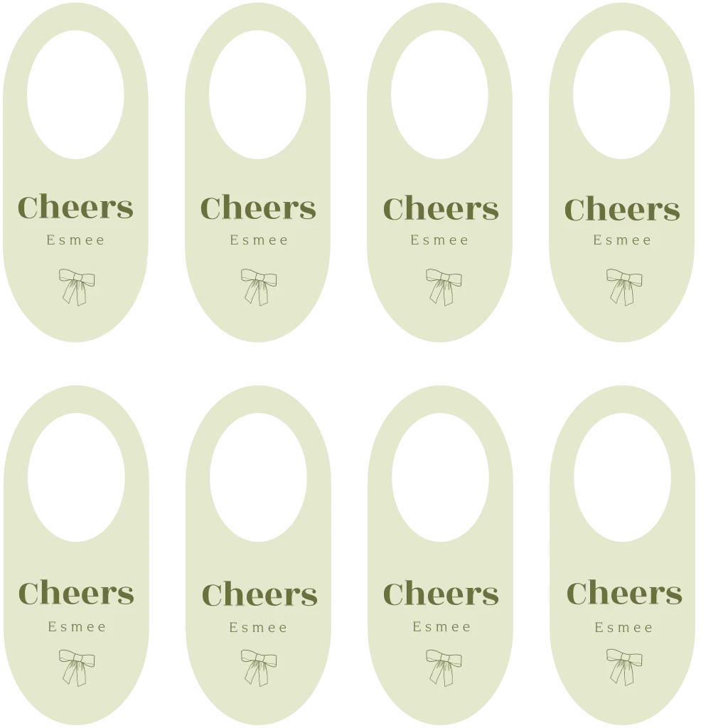Hippe flessen labels met een lichtgroene achtergrond en in donkergroen de tekst 'Cheers'. De flessenlabels hebben een illustratie van een strikje, suepr hip! Leuk voor aan de lekkere wijn voor je 21 diner.| Totaalprijs: 0 |