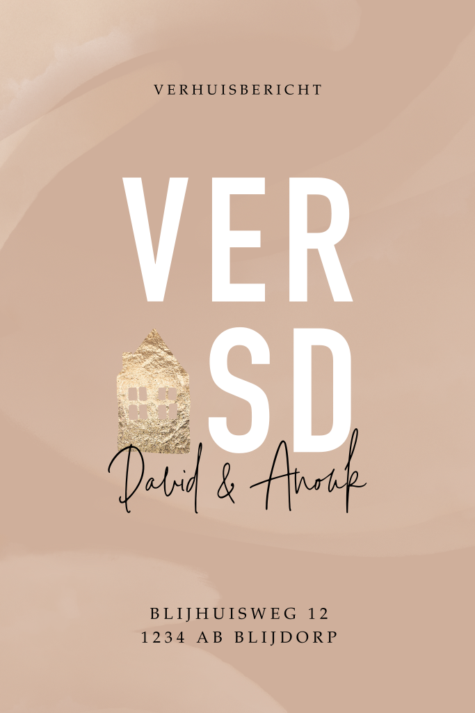 Gaan jullie verhuizen? Of samenwonen? Verstuur jullie nieuwe adres naar familie en vrienden met dit trendy verhuisbericht. Op de achtergrond een aquarel veeg. Voeg je persoonlijke tekst toe op de achterzijde, ook kun je hier een uitnodiging voor een housewarming toevoegen. Pas de kaart naar je eigen smaak aan in de editor.