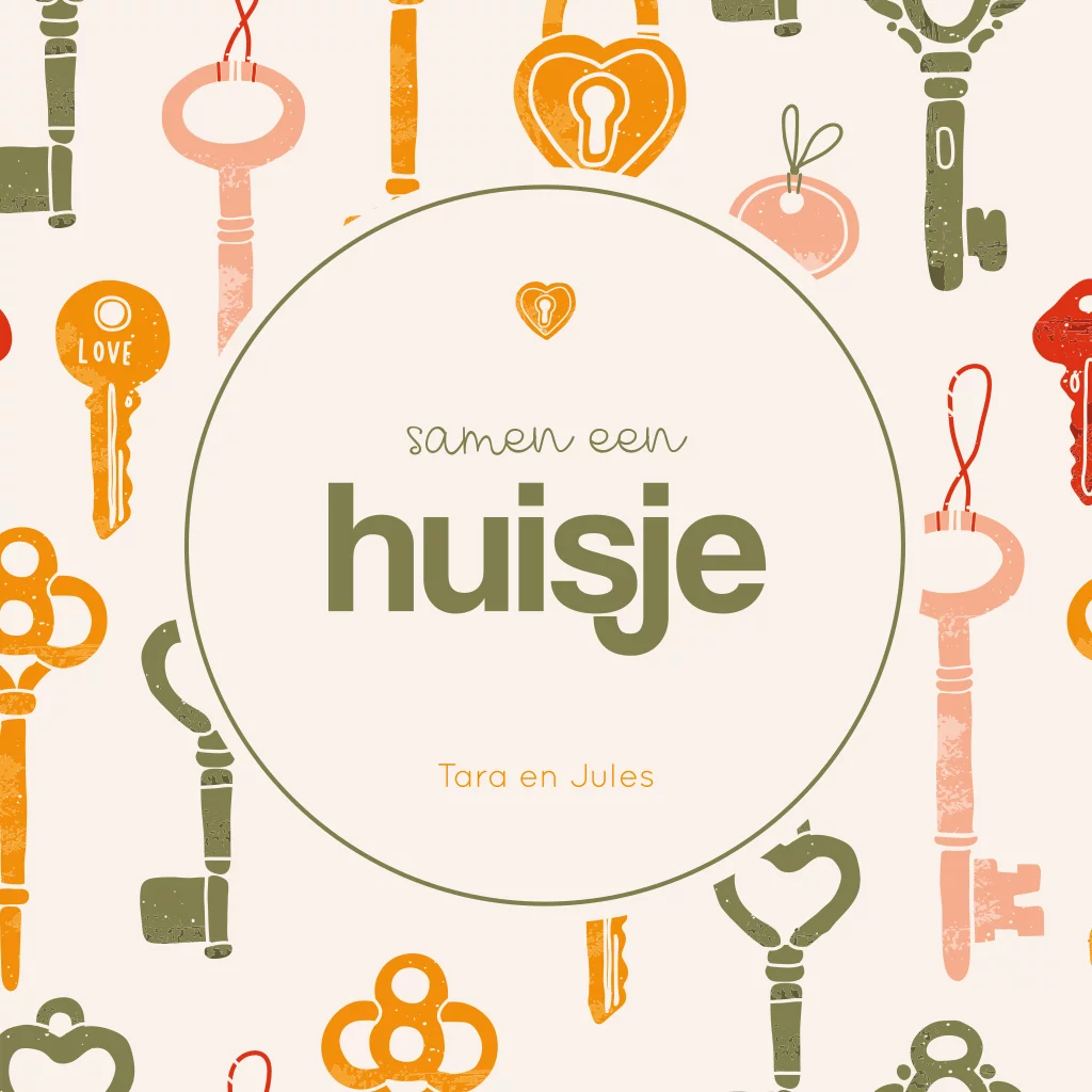 Gaan jullie samenwonen? Stuur dan dit mooie verhuisbericht met een illustratie van huissleutels en de tekst 'samen een huisje'. De teksten, kleuren en lettertypes van deze verhuiskaart zijn naar je eigen smaak aan te passen in onze editor.