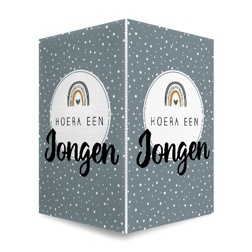 Hoera een jongen! Een geboorte raambord voor een jongen. Op dit raambord staat een algemene tekst voor de geboorte van jullie zoon, met een mooie regenboog, stippen en een hartje. De kleuren zijn helemaal in het teken van een jongen. Het staande en dubbele geboortebord is eenvoudig te bevestigen aan de buitenkant van het raam. De geboorteteksten zijn eventueel nog aan te passen in onze editor.