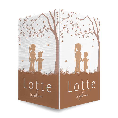 Lotte is geboren! Een geboorte raambord voor een meisje, in een staande en dubbele variant. Op dit geboortebord met de babynaam Lotte staat een grote zus met haar kleine baby zusje in trendy kleuren die helemaal van nu zijn. Plaats het geboortebord aan de buitenkant van het raam en laat iedereen weten dat jullie kindje is geboren.