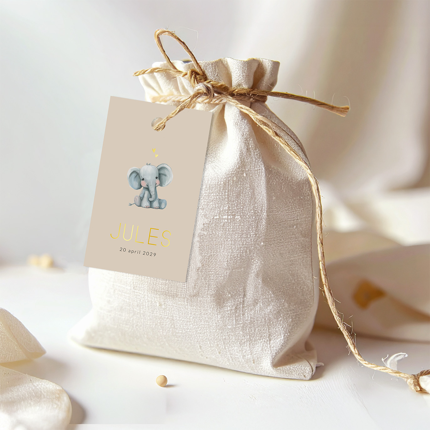 Unisex geboortelabeltje met een schattig olifantje. Dit labeltje kun je gebruiken om te bevestigen aan bijvoorbeeld een bedankje of doopsuiker. Het labeltje is te gebruiken voor de geboorte van een jongen of een meisje.| Totaalprijs: 0 |