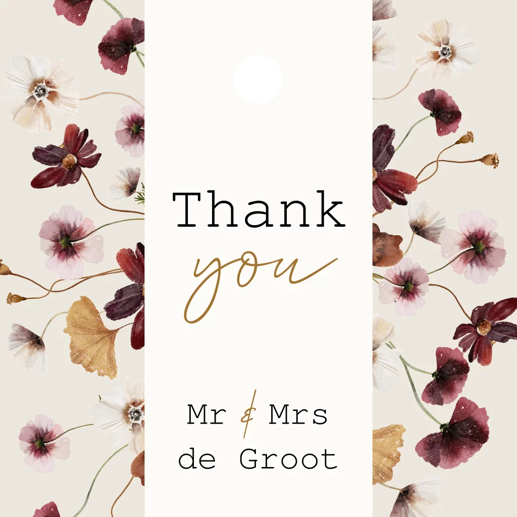 Label trouwbedankje met aquarel bloemen (per 16 stuks)