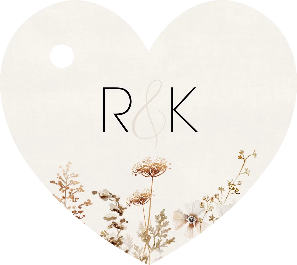 Wil je iets extra's voor je save the date kaart, huwelijksuitnodiging of trouwbedankje? Dan is dit hart label kaartje zeker iets voor jou! Op dit labeltje een trendy beige achtergrond met lichte linnenlook en aquarel bloemen. Zet jullie initialen in het midden.