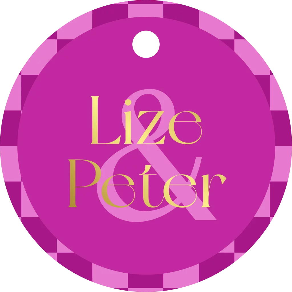 Een prachtig rond labeltje voor een bruiloft. Op dit labeltje zie je de namen van het bruidspaar in goudfolie staan met een opvallend patroon en een groot '&' teken. Pas dit labeltje naar eigen wens aan in de online editor voor de persoonlijke touch. Het goudfolie zorgt voor een vleugje luxe.| Totaalprijs: 0 |
