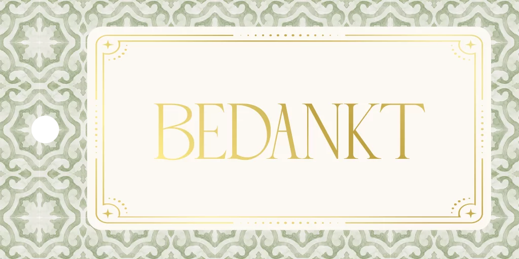 Bedank je gasten op jullie bruiloft met de perfecte bedankkaart in de vorm van een rechthoekig label. Leuk om aan een bedankje te bevestigen en deze zo te personaliseren. Het woordje 'Bedankt' staat in goudfolie vormgegeven voor een extra luxe uitstraling.| Totaalprijs: 0 |