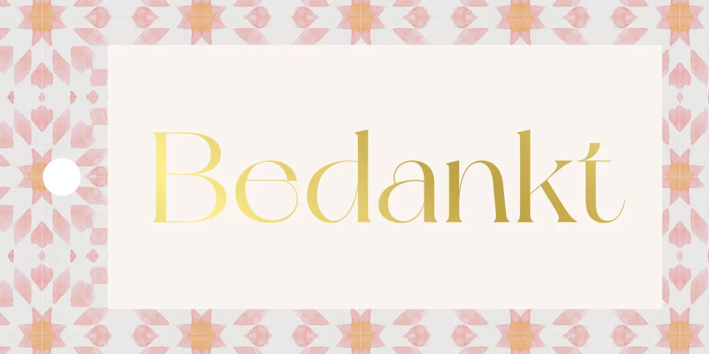 Bedank labeltjes voor aan een trouwbedankje. De labeltjes hebben een mooi roze mediterraans patroon met glanzende goudfolie.| Totaalprijs: 0 |