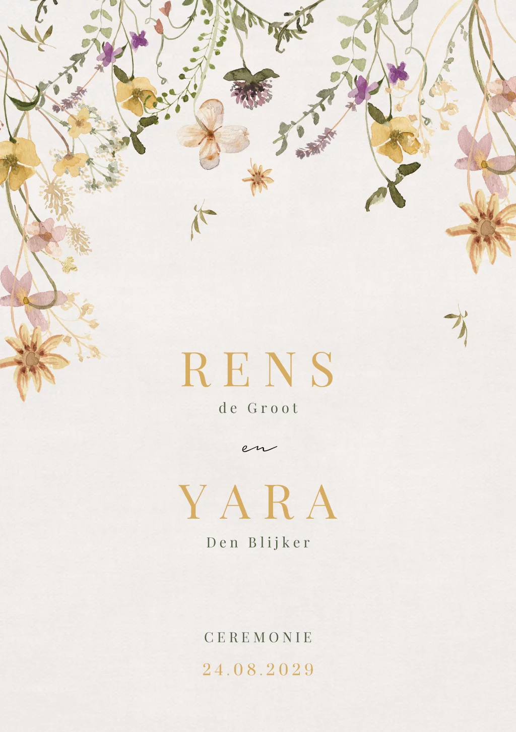 Ceremonie meester boekje met aquarel bloemen. De achtergrond heeft een zachte beige kleur en de bloemetjes hebben verschillende vrolijke kleuren.| Totaalprijs: 0 |