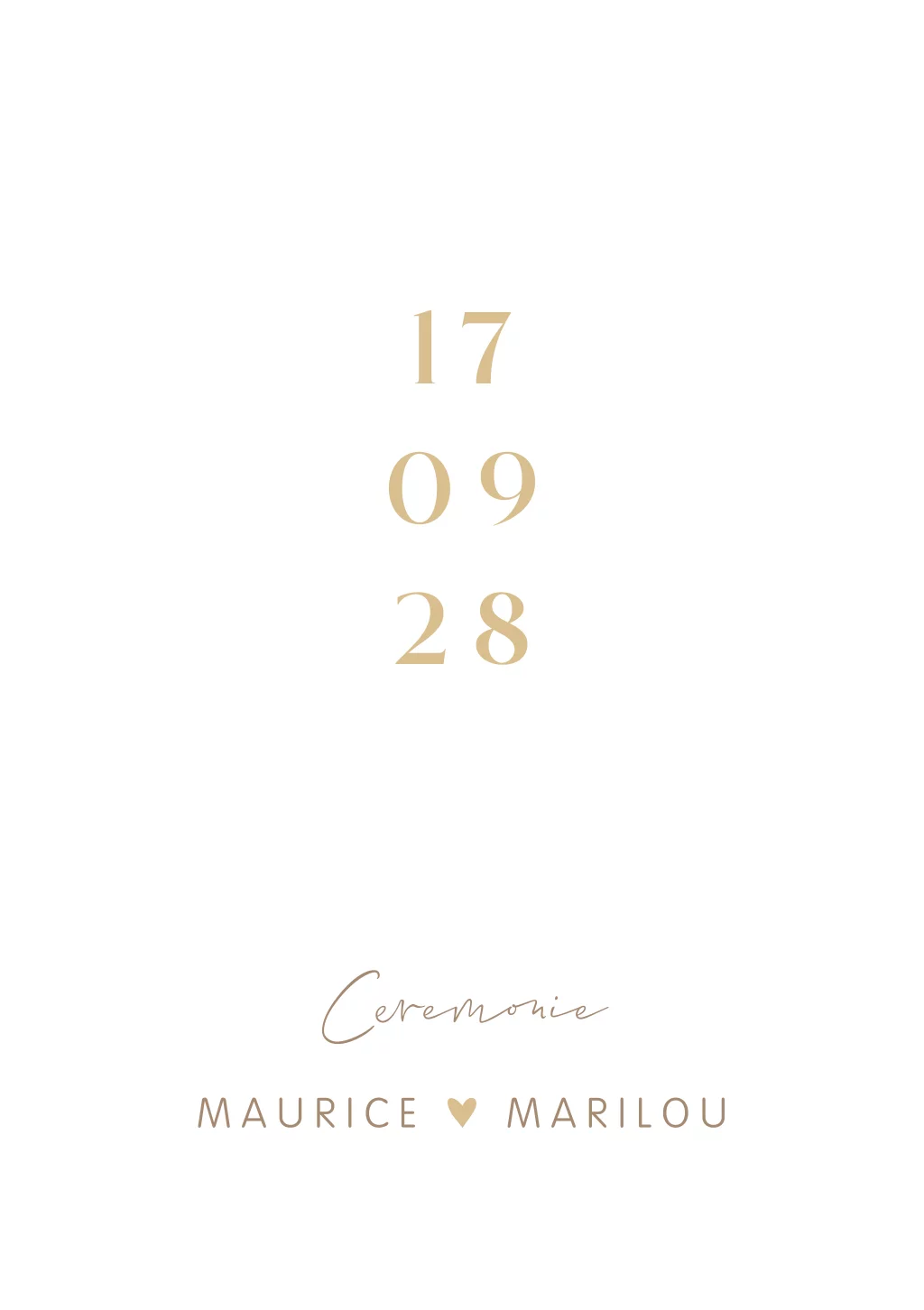 Een clean ceremonie boekje voor jullie ceremonie programma. Pas dit boekje geheel naar eigen wens aan in onze online editor. Een mooie tastbare herinnering van jullie trouwdag. Dit boekje bestaat uit 8 pagina's maar is ook uit te breiden naar 12. Vragen? Neem dan gerust contact met ons op.Totaalprijs: 0 |