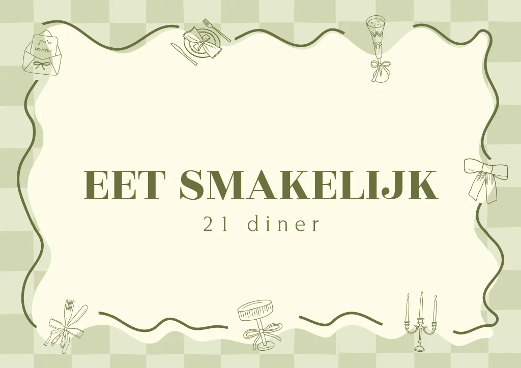 Hippe placemat met groene blokjes, een kader en illustraties. Perfect als tafeldecoratie tijdens jouw 21 diner!