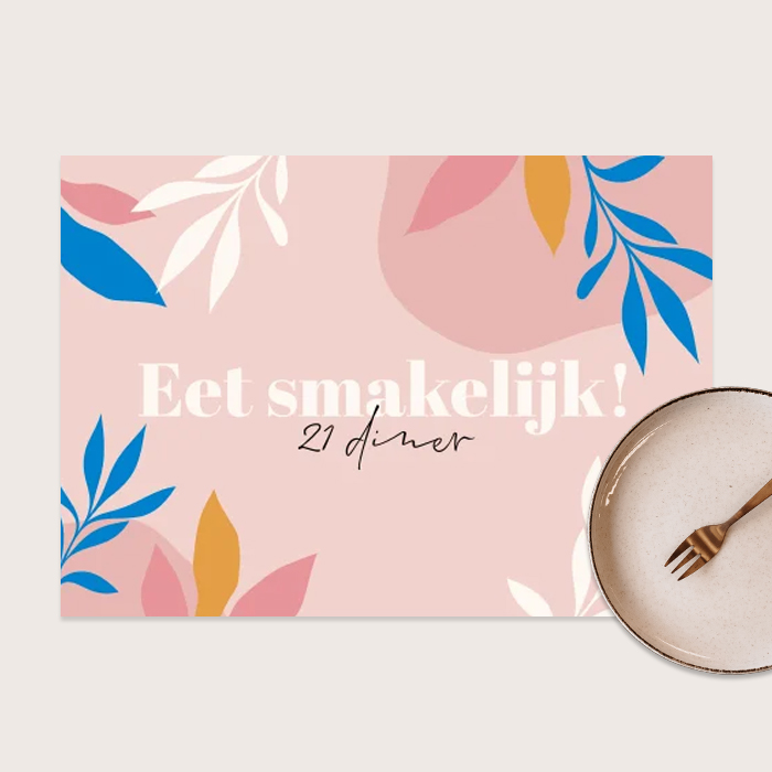 Deze mooie 21 diner placemat met botanische bladeren in verschillende kleuren maakt jouw 21 diner tafel helemaal af!