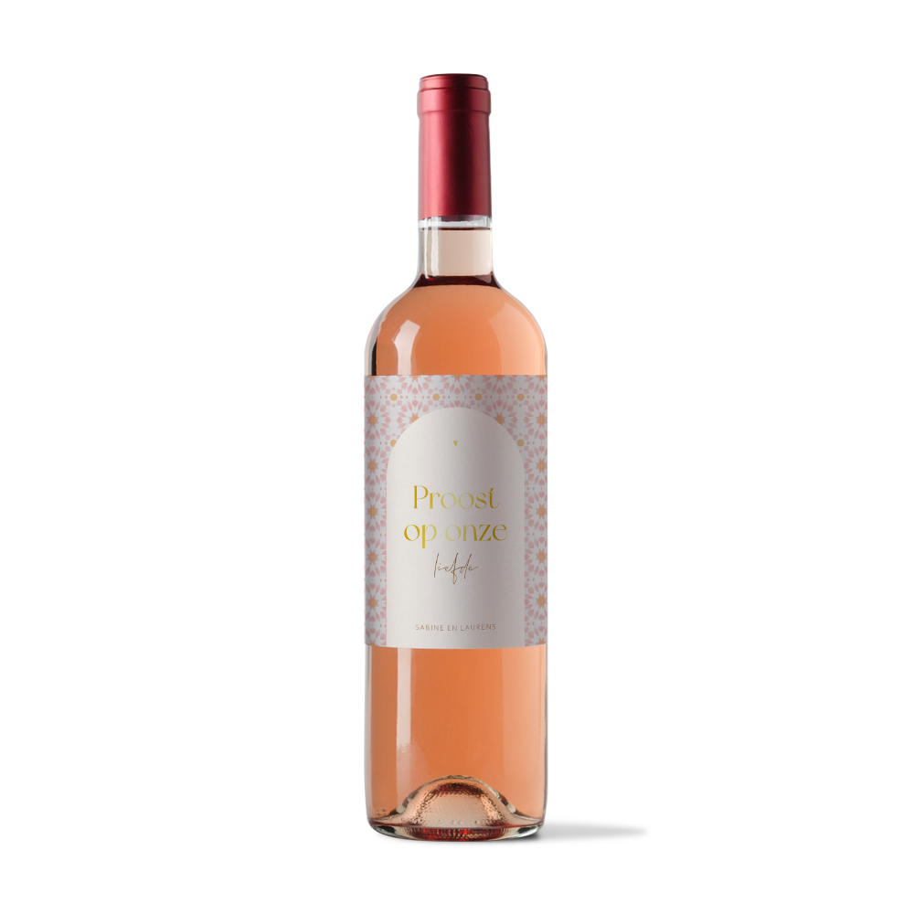 Voer de huisstijl van jullie bruiloft geheel door tot aan de dinertafel met deze luxe wijnflesetiket. Dit etiket is een luxe sticker met mediterraans patroon en foliedruk.| Totaalprijs: 0 |