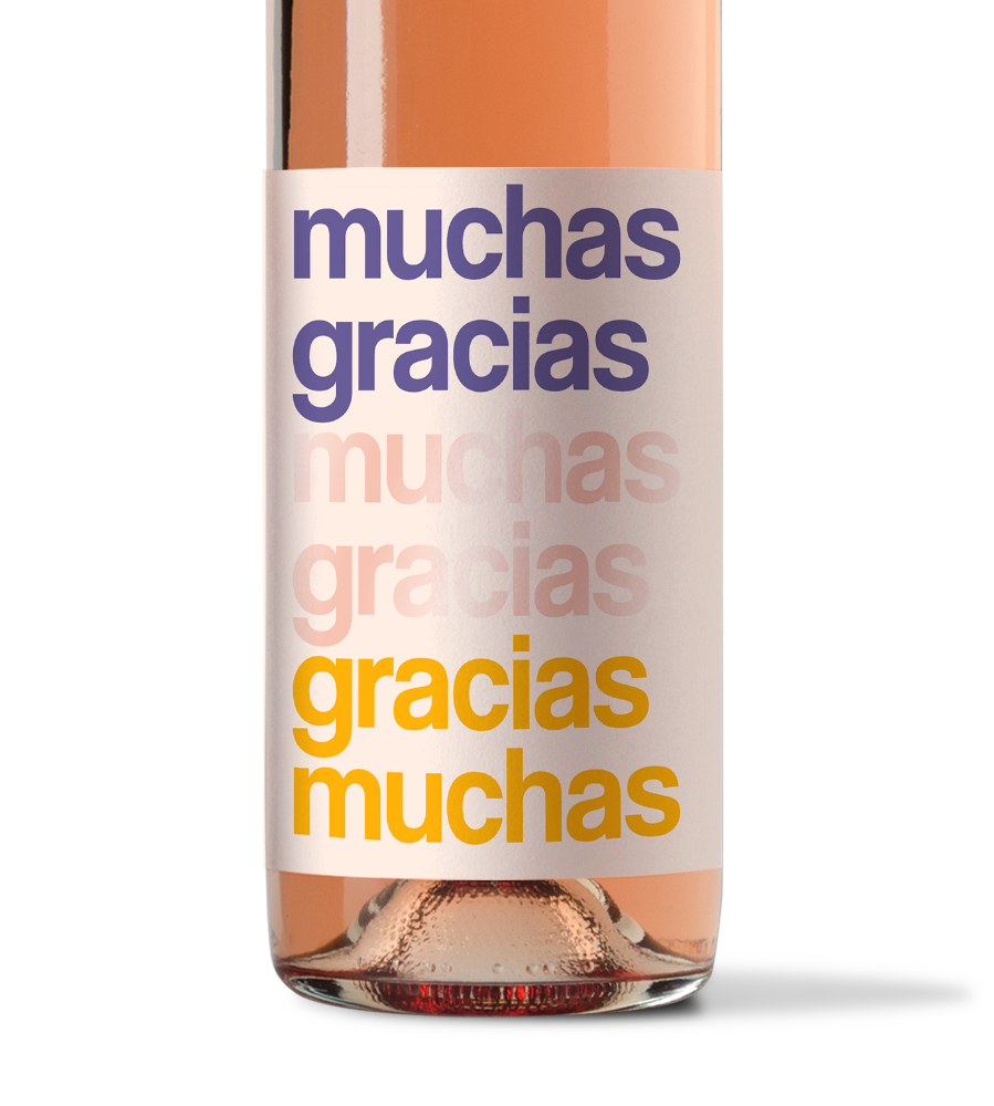 Een flessen etiket om iemand te bedanken: muchas gracias. Extra speciaal door het gebruik van luxe hoogglans.