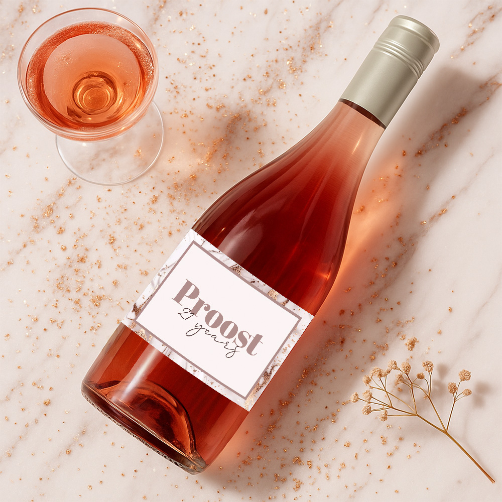 Wijnflesetiketten met kader met marmerlook voor jouw 21 diner.