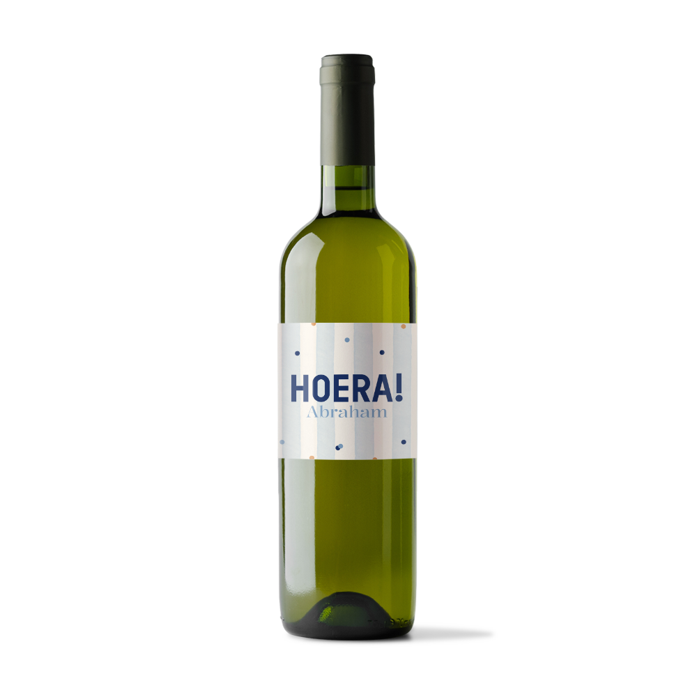 Hoera Abraham flessenetiket met strepen en confetti - 5 stuks