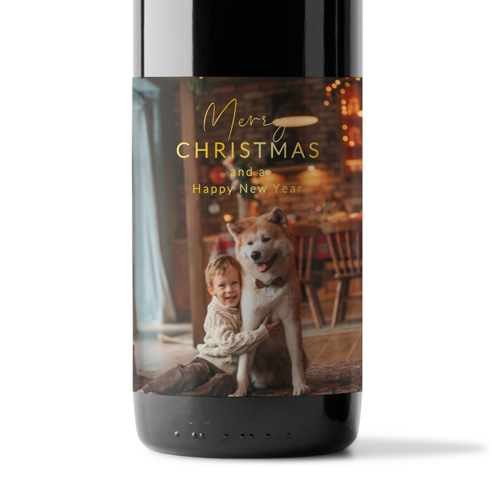 Flessenetiket met eigen kerstfoto en foliedruk - 5 stuks