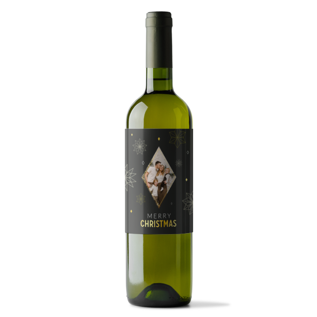 Een hip flessenetiket met eigen foto! Voeg je eigen kerstfoto toe aan dit flessenetiket en maak er een sprankelend etiket van. Dit etiket bevat goudfolie wat zorgt voor een extra vleugje luxe. Pas dit etiket makkelijk aan in onze online editor.