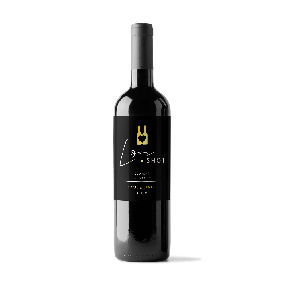 Luxe flessenetiket love shot met goudfolie - 5 stuks