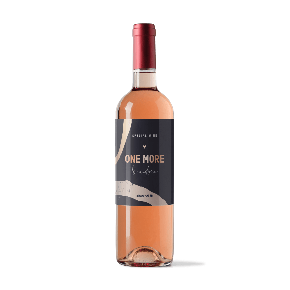 Een flessen etiket met roséfolie om je zwangerschap op een originele manier aan te kondigen. Pas het etiket makkelijk aan naar je eigen wensen in onze online opmaaktool.