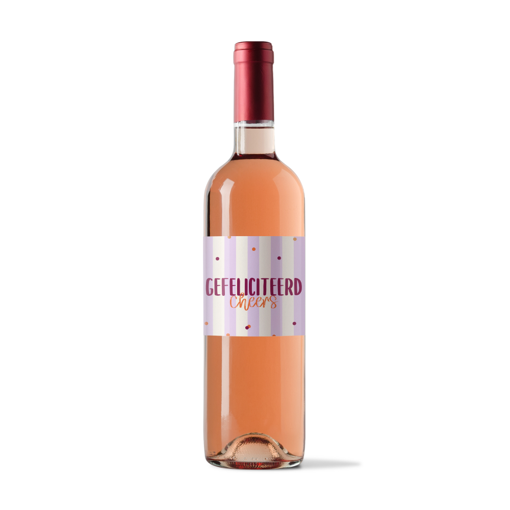 Gefeliciteerd wijnetiket met confetti en strepen - 5 stuks