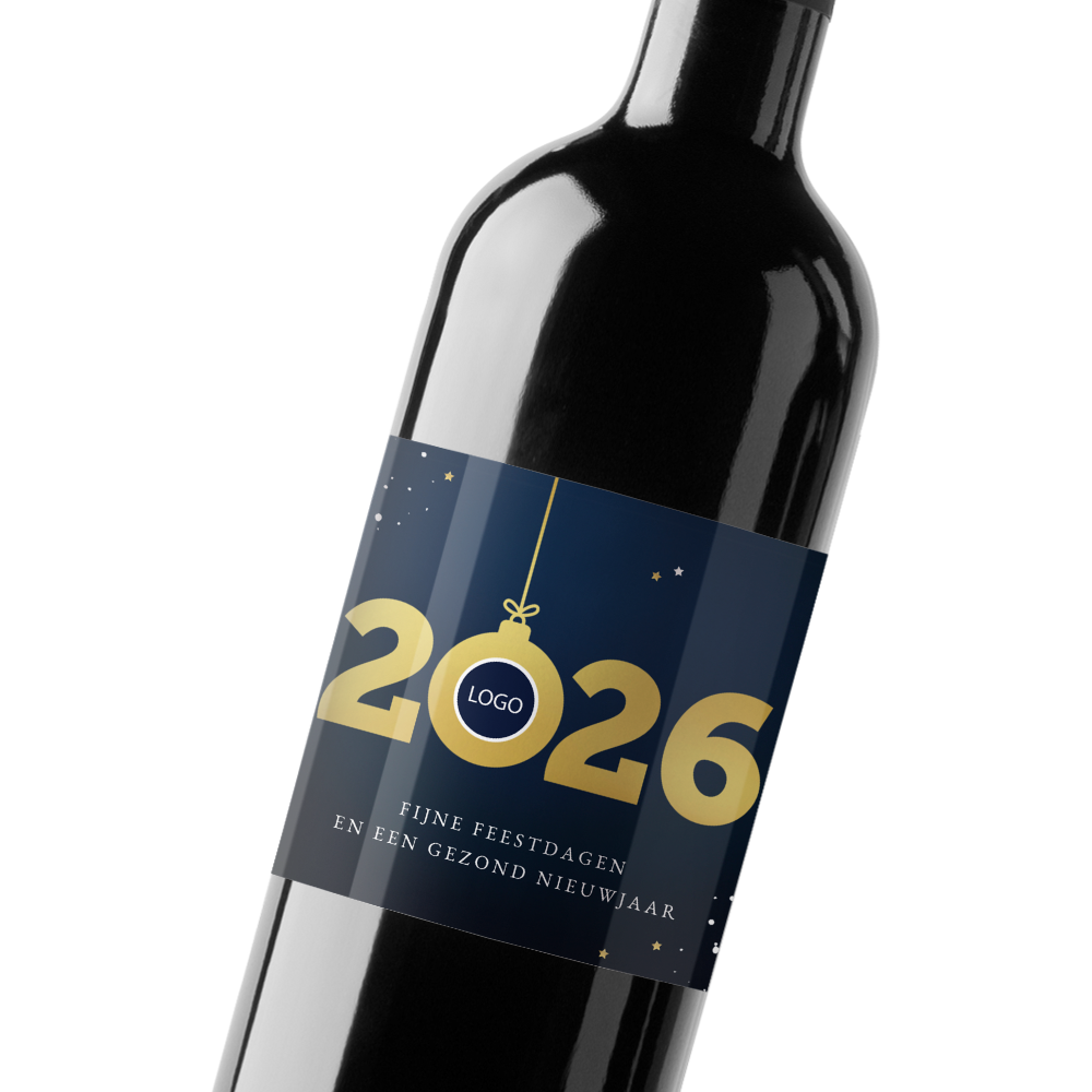 Flessenetiket met 2026 en bedrijfslogo - 5 stuks