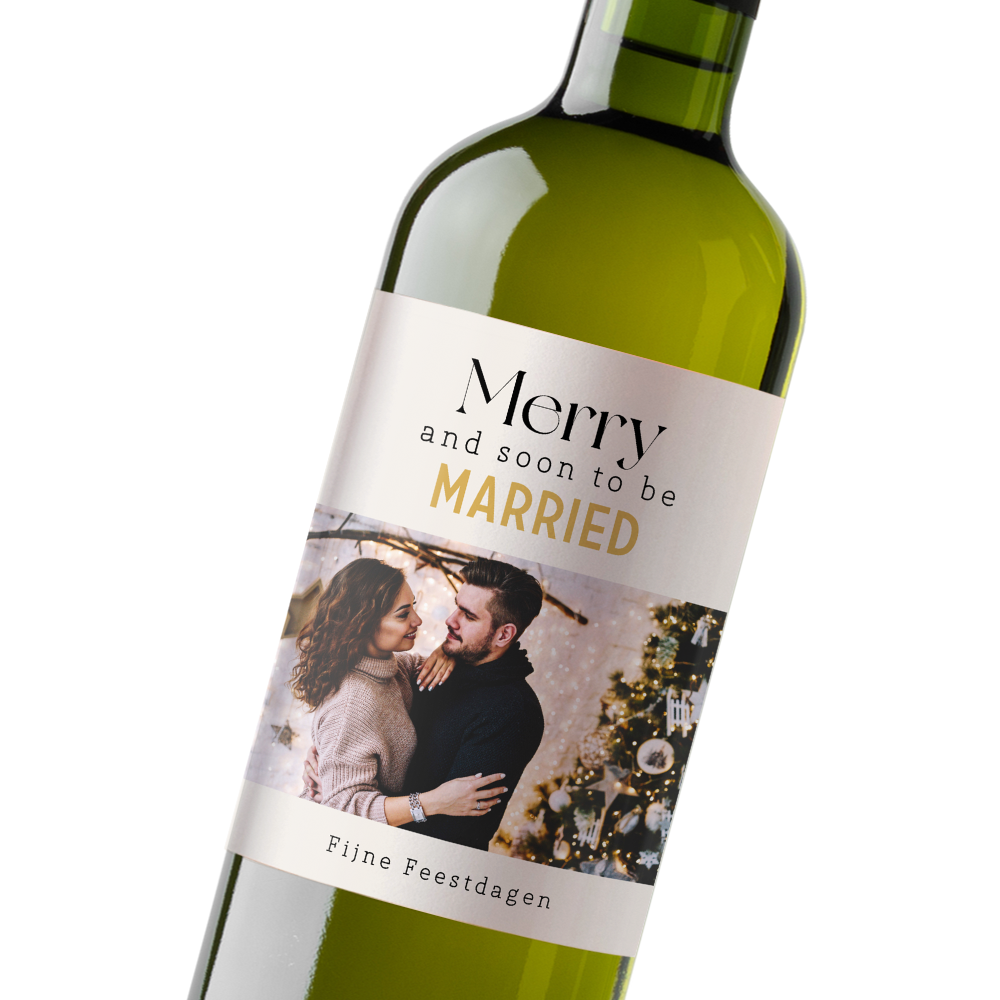 Merry and soon to be married flessenetiket voor Kerst met een Save the Date. Voeg een eigen foto toe en maak zo deze Save the Date etiket helemaal af! Pas het etiket makkelijk aan naar je eigen wensen in onze online opmaaktool.