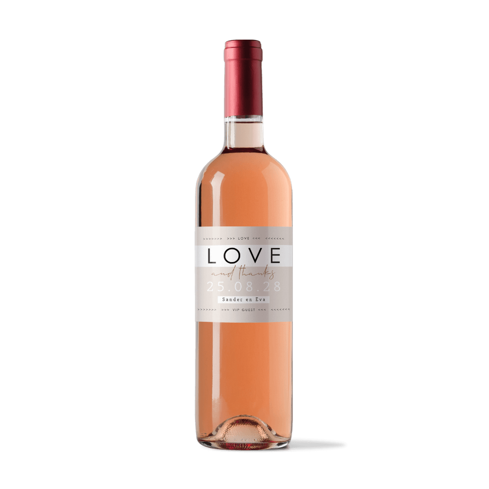 Flessenetiket love and thanks ticketstijl - 5 stuks