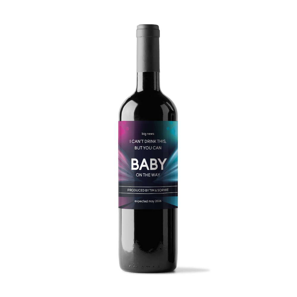 Baby on the way? Kondig met dit hippe flessenetiket je zwangerschap aan! Pas het etiket makkelijk aan naar je eigen wensen in onze online opmaaktool.