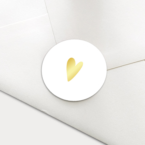 Luxe sticker met goudkleurig hartje in écht goudfolie. De foliedruk geeft een luxe uitstraling aan deze sticker. Gebruik deze sticker als sluitsticker voor de envelop van je geboortekaartje, trouwkaart of andere uitnodiging of voor op bijvoorbeeld een trouwbedankje.