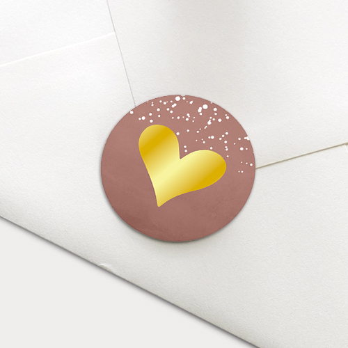 Luxe ronde sticker met hartje in echt goudfolie en stipjes. Deze sticker kun je gebruiken als sluitsticker voor de envelop van het geboortekaartje van je dochter.