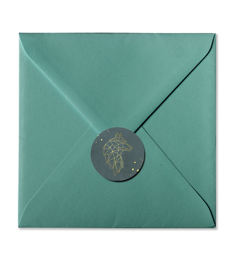 Stoere luxe sluitsticker met geometrische wolf en goudfolie - 20 stuks