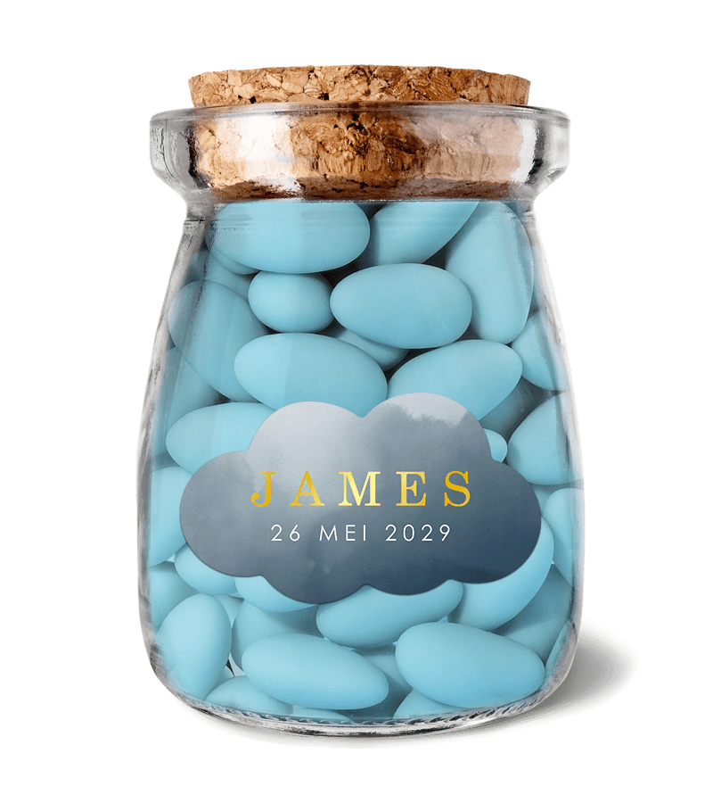 Sticker in de vorm van een wolkje met goudfolie. Sticker James is heel leuk om te gebruiken voor bijvoorbeeld doopsuikers of kraambezoek bedankjes.