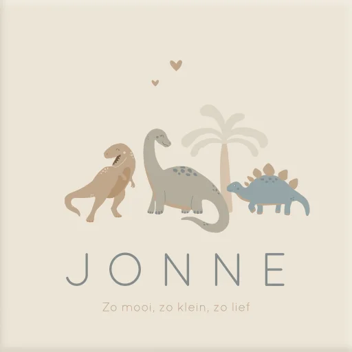 Op dit geboortetegeltje Jonne zie je schattige dino's in rustige natuurkleuren.