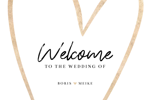 Basic tuinbord waarmee je al jullie gasten welkom heet op de dag van jullie dromen! Op dit cleane, rustige bruiloftsbord een groot, zandkleurig hart. Je kunt de teksten op dit welkomstbord zelf eenvoudig aanpassen in de editor. Formaat 60 x 40 cm.