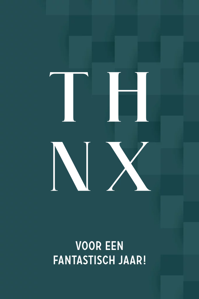 Wens je medewerkers en zakelijke relaties een succesvol 2026 met dit kleine sparkling kerstkaartje voor bedrijven. Op dit zakelijke kaartje staat 'THNX´ in zilver foliedruk. Geschikt voor bedrijven uit diverse sectoren en branches.