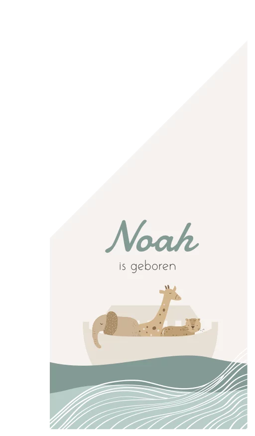 Een geboortevlag voor een jongen met de Ark van Noach. Geboortevlag Noah heeft een beige achtergrondkleur met een blauwe zee. In de Ark zitten verschillende dieren zoals een olifant, giraf en leeuwtje. Versier met buren, familie of vrienden met deze geboortevlag de tuin om de geboorte van de baby op een originele manier te vieren.