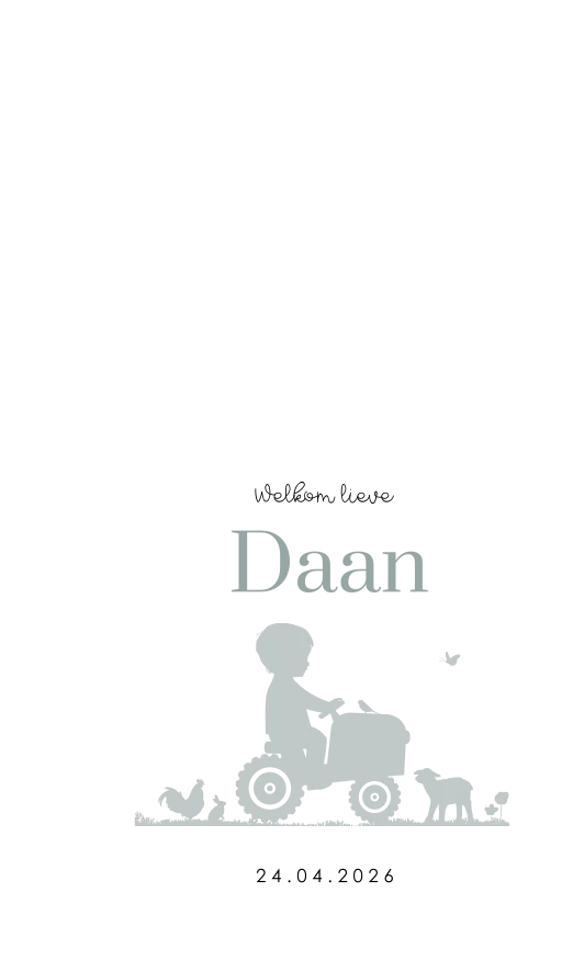 Een geboortevlag voor een jongen. Op de vlag staat een jongetje op een trekker met boerderijdieren zoals een kip en lammetje. Versier met buren met deze geboortevlag de tuin en vier de geboorte van de nieuwste telg in de buurt. Ook leuk om als vrienden of familie de tuin mee te versieren.