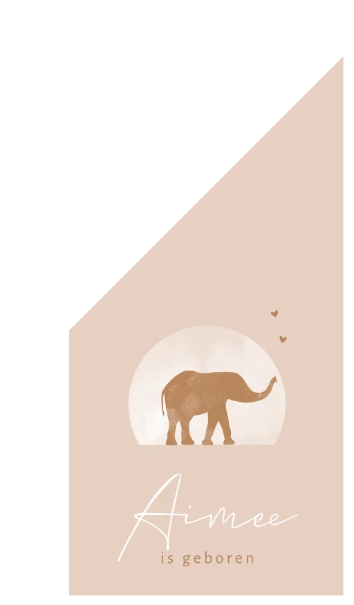 Wanneer je dochter geboren wordt, is het een uniek moment waar je altijd met veel plezier aan terug zult denken. Een geboortevlag is dan ook een perfecte manier om dit bijzondere moment vast te leggen. Ook leuk om met buren, familie of vrienden een gepersonaliseerde vlag op te hangen en op deze manier de tuin te versieren om de geboorte van de baby te vieren. Op deze roze geboortevlag Aimee een olifant voor een ondergaande zon met hartjes.