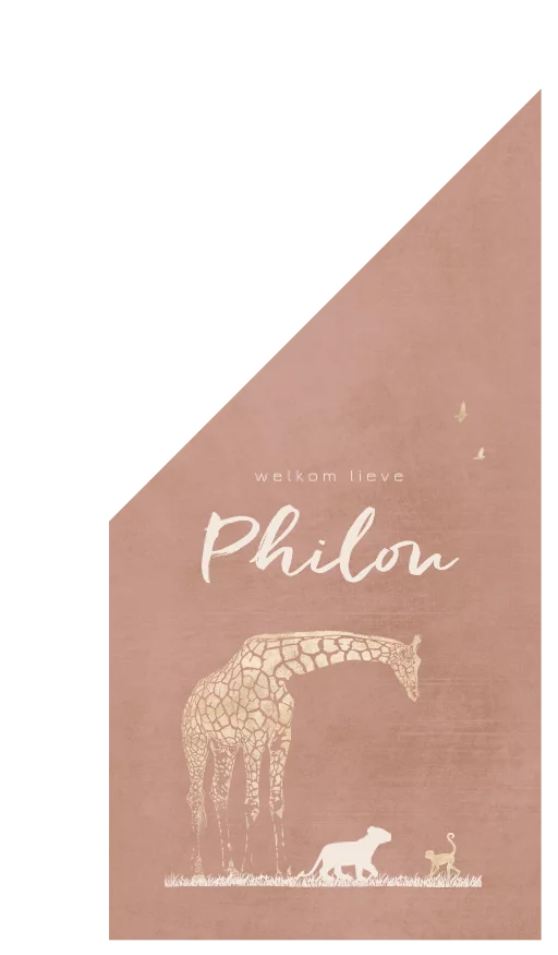 Een geboortevlag om de geboorte van jullie dochter aan te kondigen aan de hele buurt. Ook leuk en origineel om met buren, familie of vrienden deze geboortevlag op te hangen en de tuin te versieren om de geboorte van de baby te vieren. Op de oudroze vlag Philou staan silhouetjes van jungledieren zoals een giraf, welpje en een aapje. Ook is er ruimte voor de naam van jullie dochter.