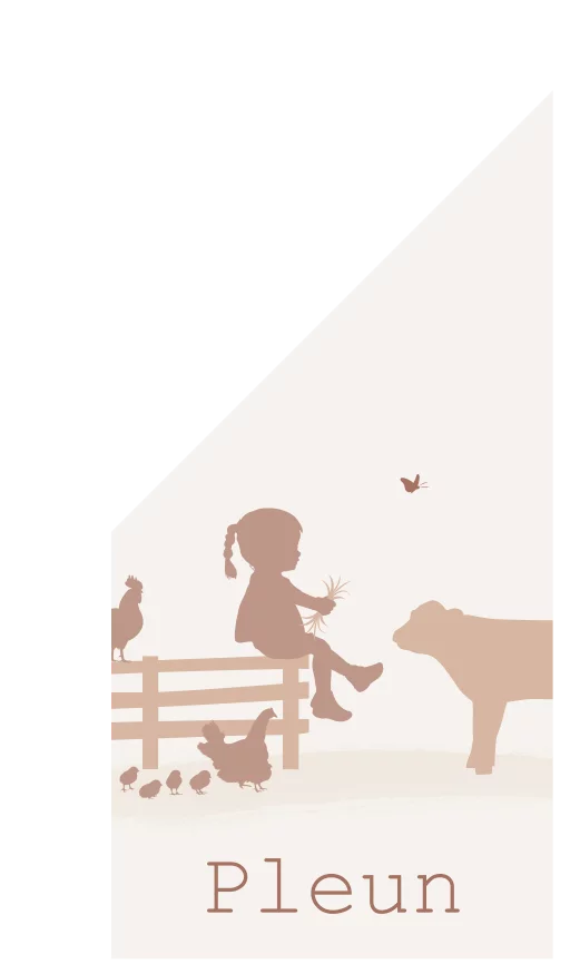 Boerderij silhouet geboortevlag voor een meisje met boerderij dieren met kalfje en kippen. Op deze baby geboortevlag voert het meisje de boerderijdieren. Een geboortevlag is een originele manier om de tuin te versieren van de kersverse ouders.