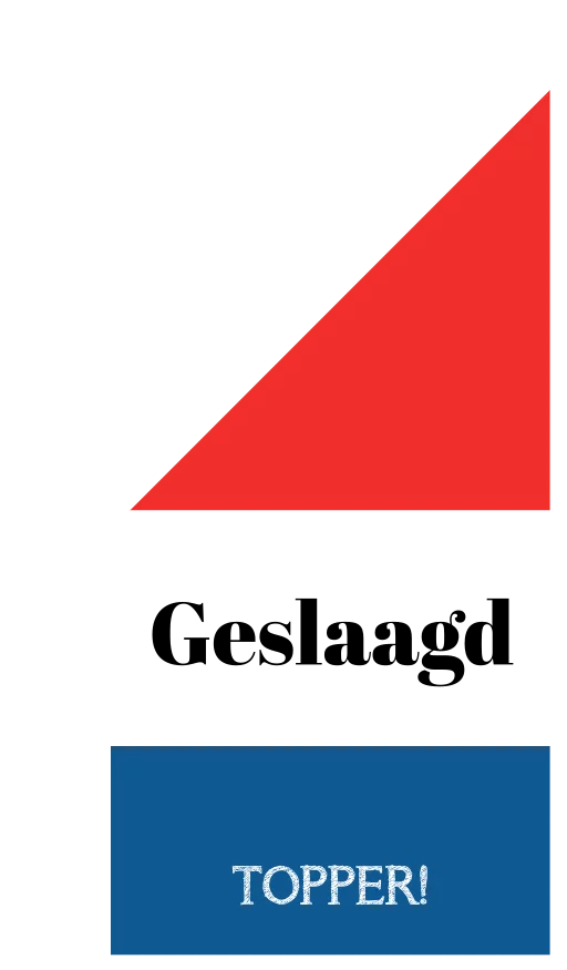 Een geslaagd vlag voor iemand die geslaagd is voor zijn of haar opleiding. Op de rood, wit, blauwe vlag staat de tekst geslaagd topper!