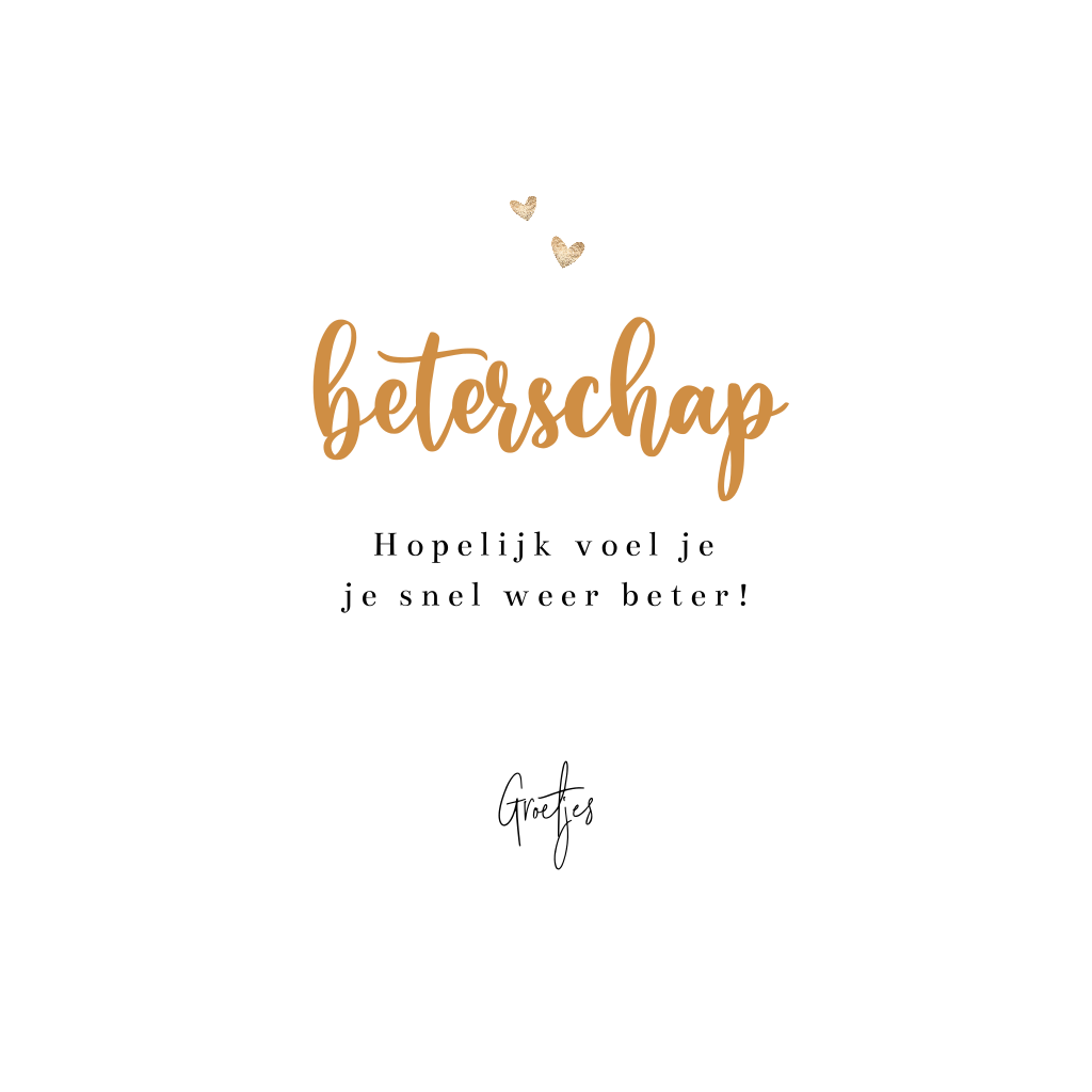 Verstuur een knuffel via de post om iemand beterschap of sterkte toe te wensen bij ziekte of na een operatie. Deze beterschapskaart in trendy geel heeft goudkleurige omhelzende armen en tekst in zwart en wit. De teksten zijn gemakkelijk aan te passen.