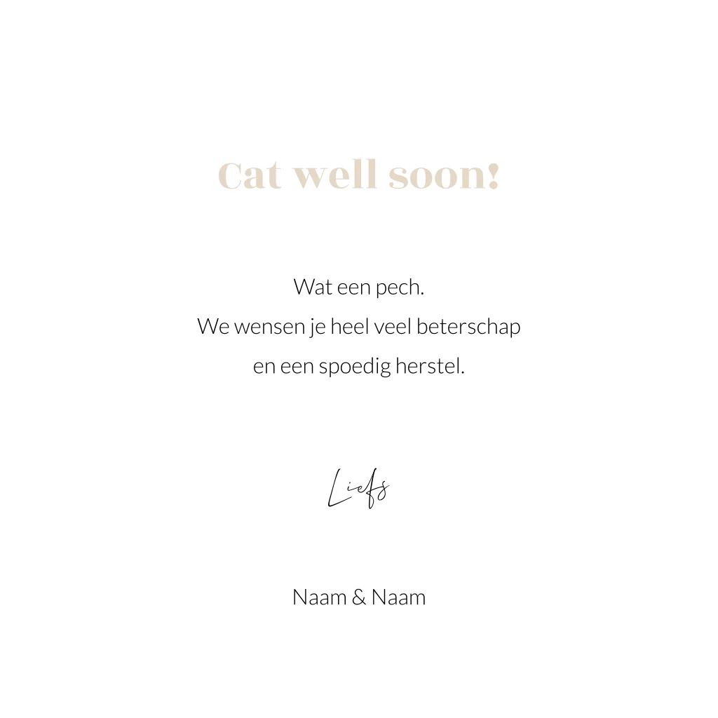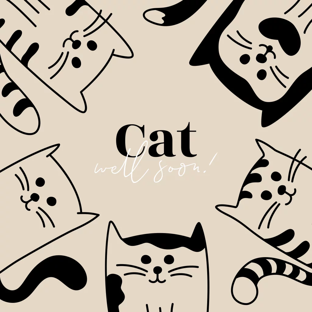 Stuur een ´Cat well soon!´ kaart! Op deze beterschapskaart zie je vrolijke katjes de tekst ´Cat well soon!´ omringen. Extra leuk om deze kaart naar iemand te sturen die fan van katten is en wel een beterschapskaartje met steun kan gebruiken.