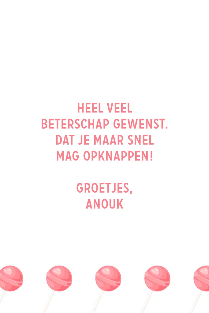 Op zoek naar een unieke wenskaart om iemand beterschap te wensen? Kies dan voor deze zoete kaart met rosé foliedruk en een lolly patroon. Op deze roze kaart staat de tekst 'this sucks'.